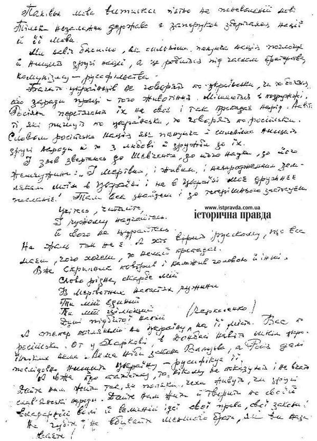 "Я ішов простою дорогою, тернистою. Не зблудив, не схибив. Мій протест – то сама правда, а не московська брехня від початку до кінця. Мій протест – то пережиття, тортури української нації. Мій протест – то прометеїзм, то бунт проти насилля і поневолення. Мій протест – то слова Шевченка, а я його тільки учень і виконавець".